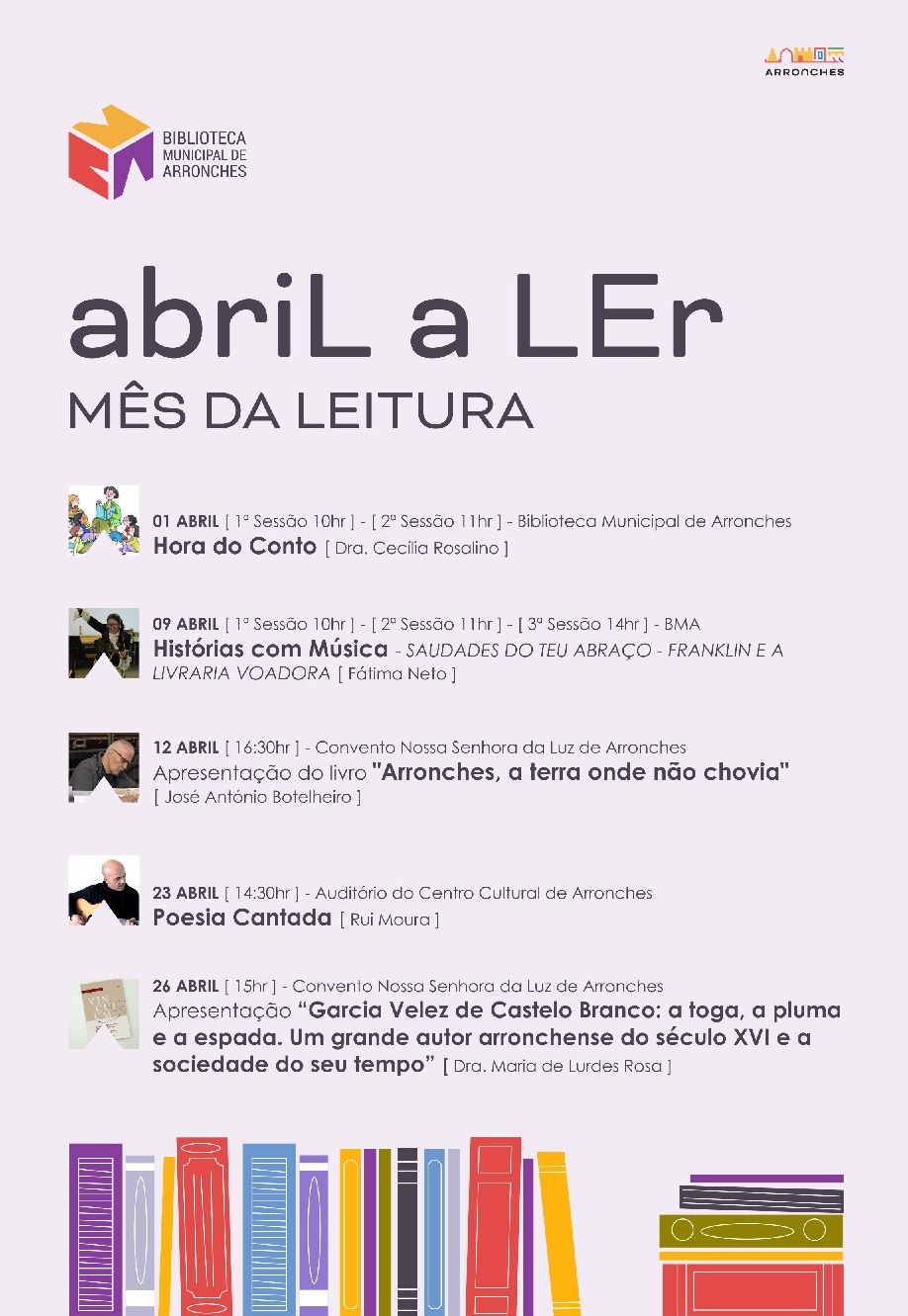 Conheça a programação a decorrer na Biblioteca Municipal de Arronches, no âmbito das Comemorações do Dia Internacional do Livro Infantil e Dia Mundial do Livro e do Direito de Autor.
