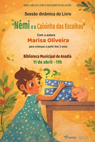 A Biblioteca Municipal de Anadia recebe no próximo dia 11 de abril, pelas 11h00 ,a sessão dinâmica do livro "Némi e a Caixinha das Escolhas”....