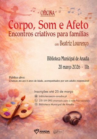 A Biblioteca Municipal de Anadia recebe no próximo dia 28 de março, pelas 11h00 , a oficina “Corpo, Som e Afeto – Encontros criativos para famílias”, dinamizada po...